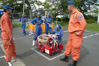 女性消防団練習風景・・機敏さ、タイムを図られて、消防職員から厳しい激が飛んでいました。晴れ舞台・・堂々と臨んでほしいと思います。