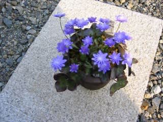 お花大好きな私は、先日ご近所のお花好きのお宅で撮影させていただいた画像を使用させていただきました。春を待ちわびて、けなげに咲く「雪割り草」・・・八重咲きのお花です。