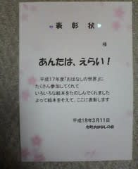 明日の「おはなしの世界」で子どもたちへのご褒美・・・賞状を手づくりしました(画像)