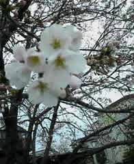 ぽつぽつ開き始めた桜の花・・携帯カメラでアップの画像を撮ってみました。