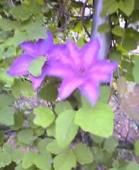 夕方「もこ」と散歩・・ご近所に咲く「てっせん」の花をパチリ