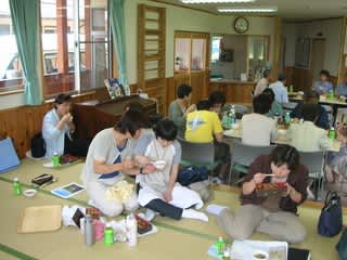 施設見学から戻って・・18:00~ 今町小学校・中学校合同の意見交換会。