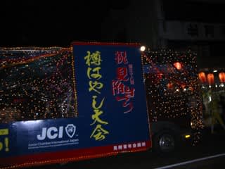 それでも祭りの最後です・・・市内の保育園児や養護学校の子どもたちも参加するというので見物に出かけました。雨もあがりたくさんの参加者で会場はにぎやかでした。JCの車はピカピカのサイン華やかでにぎやかで法被姿もいなせでカッコよかったです。神輿に見附太鼓に・・夜店も覘いてきました。