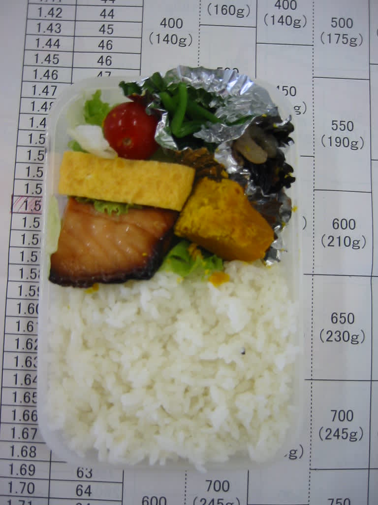 ご飯は少なめ・・おかずは多めにの食生活でした今日はお弁当箱を使って自分の標準体重からの必要エネルギーを算出し、お弁当箱は半分にご飯・・これも意外でした。お茶碗に移し変えてみると普段の1.5倍・・こんなにご飯食べてもいいのかしら そんな感じでした。その分満腹感が得られ、コレステロールの多い主菜が少なくて済むこともわかりました。