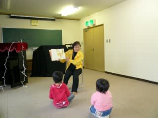 最近の小学生はスポ少で忙しいみたいで参加してくれる子どもの年齢が下がってきました。でも若いお父さんやお母さんの姿もあって喜ばしいことです公民館に来てくれたお友達・・画像では少人数のようですが、壁の花となってきいてくれましたよ。最初はクリスマスツリーに気をとられツリーを飾ったのは失敗だったかな?と思いましたが、お話が始まるにしたがってしっかりと聞き入ってくれました