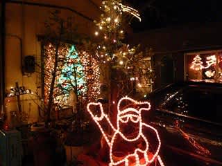 お店の店先にもステキなイルミネーションを発見(サンタのイルミ)しました(画像)