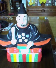 今町に伝わる「土人形」を復元しようと地元のKさんが佐渡に行って型を学び、試作した「天神様」です。