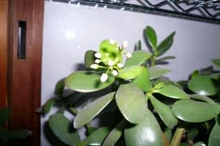 我が家の「金のなる木」・・・めずらしく花を付けました。