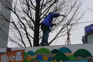 高所作業車も出動して、いつもながら手際のよい生徒の面々
