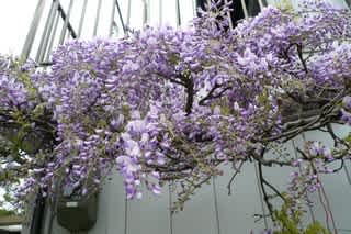 五月の空にお似合いの「藤の花」・・・ご近所のNさんが毎年丹精込めて育てています。これから見ごろを迎えますひと足お先にパチリ