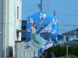 昨日行われた地元中学校の体育祭の各軍マスコット・・今町は六角凧に生徒たちが独創的に絵を描きます。この大凧・・来年の凧合戦の時に中学生が刈谷田の土手で揚げることになっています。