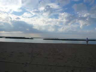 昨日夫と訪れた日本海・・・遠くに佐渡島が望め、空は秋の空でした。