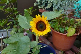 先日訪問した施設の感謝祭でいただいた「向日葵」が咲きました。