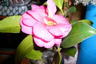 我が家の玄関に生けた「寒椿」・・・蕾からようやく花開きました。