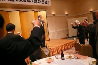 旗開き、ご来賓のご挨拶のあとに・・・みんなの幸せを祈って「乾杯」
