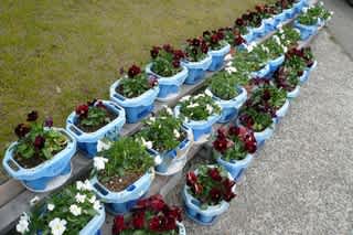 入学式で出迎えてくれた鉢植えのパンジー・・地元小学校での撮影です。