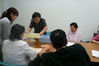 今日は牛乳パックから和紙を作るために「紙すき」をしました。