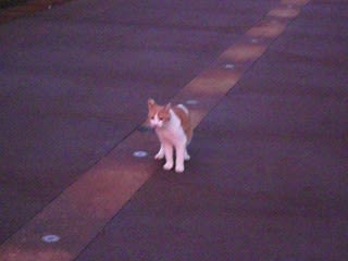 近づくといつも道路の真ん中に寝て、「ニャーニャー」甘えてきてくれます。