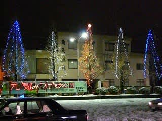 寒~い、とある日曜日「めだかの学校」の仲間と設置した駅前イルミネーションです。