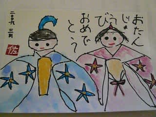 3月が誕生月のメンバーをいらっしゃいますので、震える手で絵手紙を書きました。何だか恥ずかしい作品になりましたが・・気持ちが伝わるといいな~