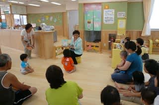 絵本の読み聞かせが始まっても飽きる子もいましたが絵本の絵に集中してずっと特等席で見入るお子さんもいて、こういった取り組みが大切なのだと改めて感じました。若いお母さんもお遊戯や手遊びでわが子と一緒に挑戦していてほほえましく感じられました。お母さんたちの仲間作りのためにも子育て支援センターの果たす役割は大きいと思いました。