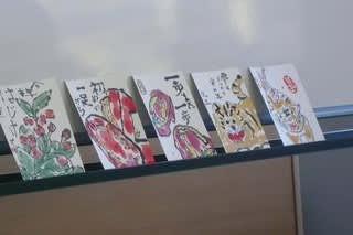 今月は年賀状の絵手紙、来年の干支や新年にふさわしい画材を用いての練習でした。