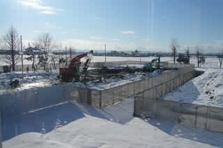 新校舎から外をのぞくと・・プールの姿もすっかりなくなっていました。