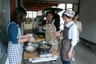 詳細は行動記録にアップしてありますが、おそばの会や元気の会の皆さんが朝早くから準備に入り、慰問先の工房みつけの駐車場ではてんぷらやそばを茹でる準備が進み、そのための道具もプロ並みでした。簡易の流し台やてんぷらナベ・タイマーなども準備されてその手際のよさに脱帽です。私はいつもの通り味見係です。