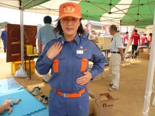 私は女性も活躍する女性消防団・・昨年もAEDの使い方を習いましたが、いざという時のために今年も教わりました。