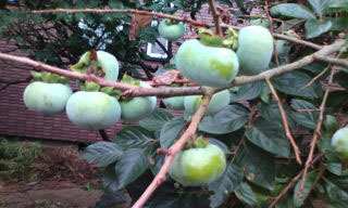季節は秋です日中の気温もうんと下がり、「もこ通信」を配りながら柿の実を見つけました。