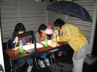 夕方からは新潟小学校6年生の花火アナウンスの最終指導・・今日は外に会場を移し、本番さながらに3人の声のバランスをとりました。