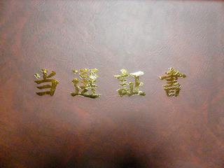 選挙も終わり、今日当選証書を付与していただきました。