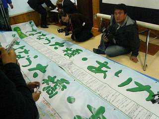 会場を訪れた人たちや子どもたちの想いが大弾幕にかきこまれていきます。