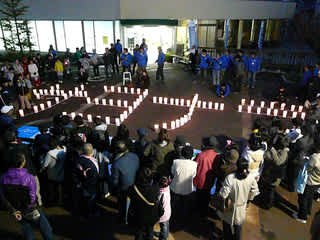 日暮れとともに「サヨナラ」のキャンドル文字が出来上がりました。