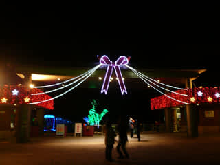 入り口、リボンのイルミがお出迎え