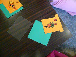 みんなでプラ版つかってオリジナルのクリスマス カードをつくりました。