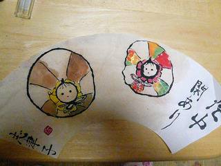 扇紙に大きく絵を描いて、言葉を添える・・うぅ~ん、なかなか上手くかけない。