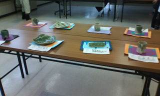 見附に戻ってネーブル見附に資料を頂きに寄ると、そこで開催されていた葛巻小学校5年生の陶芸展が・・