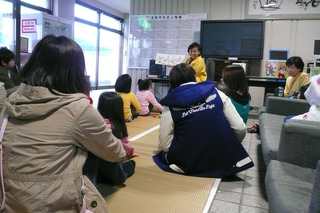 地元の子どもたちと今町体育館に避難してきている子どもたちと一緒・避難所ボランティアさんも一緒になって「おはなしの世界」を楽しんでいただきました。