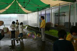 大きいシャボン玉・小さいシャボン玉・・・風に乗って飛んでいきました。