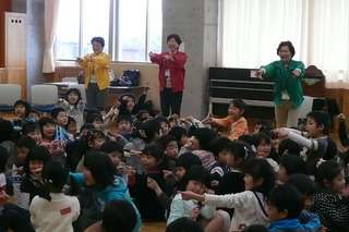今町小学校の学習参観日・・今日は1・2年生150人を前に「絵本の読み聞かせ」