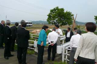 その後は議員研修で排水事業に関連して、才川・貝喰川・田んぼダムについて委員会室で説明を受けたのちに現地視察、実際の場所に出向きました。