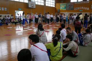 赤・白に分かれてひっくり返しのゲーム。これが結構エキサイティング・・私は赤で参加しましたよ。