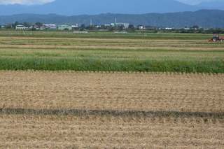大きなキャンバスのような景色・・たわわに実った稲穂の刈り入れもすっかり終わっています。