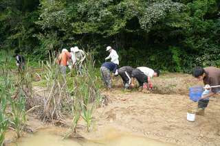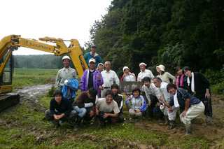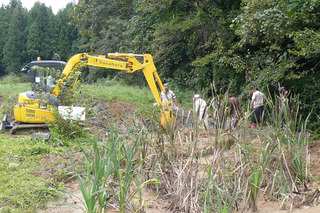 めだかの学校「めだか池」の復旧作業。