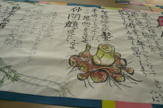 絵手紙に台紙をはったりアイロンかけたり・・