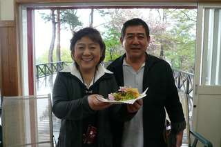 今日は連休最終日と言うのに生憎の雨模様で、デッキに出ての昼食会とはいきませんでしたが、それでも仲間が集い、山の空気を吸いながら楽しいひと時を過ごしました。