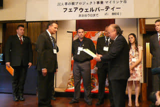 両市で記念品の交換が行われ、JICAからは研修の修了書が各自に手渡されました。