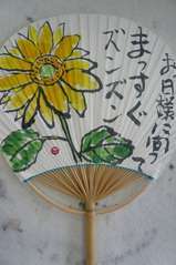 「うちわ」に絵を・・裏にあて先を書いて投函すればちゃんと手紙として届くそうですよ