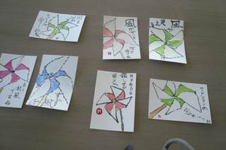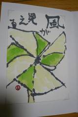今日は急遽折り紙で「かざぐるま」を作っての絵手紙でした。